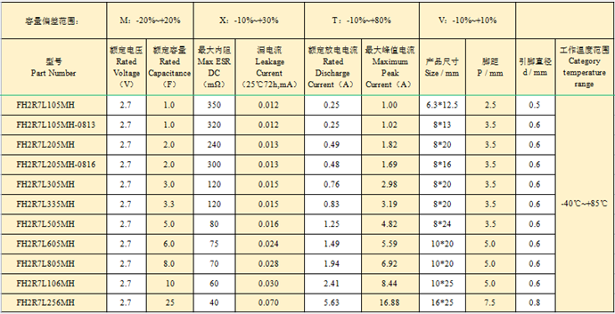 風華超級電容FH2R7L605MH 產品型號:FH2R7L605MH-2.7V 6.0F